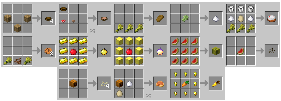 (그릇, 버섯, 설탕, 케이크, 쿠키, 황금사과, 수박, 수박씨, 호박씨, 호박파이, 황금당근)