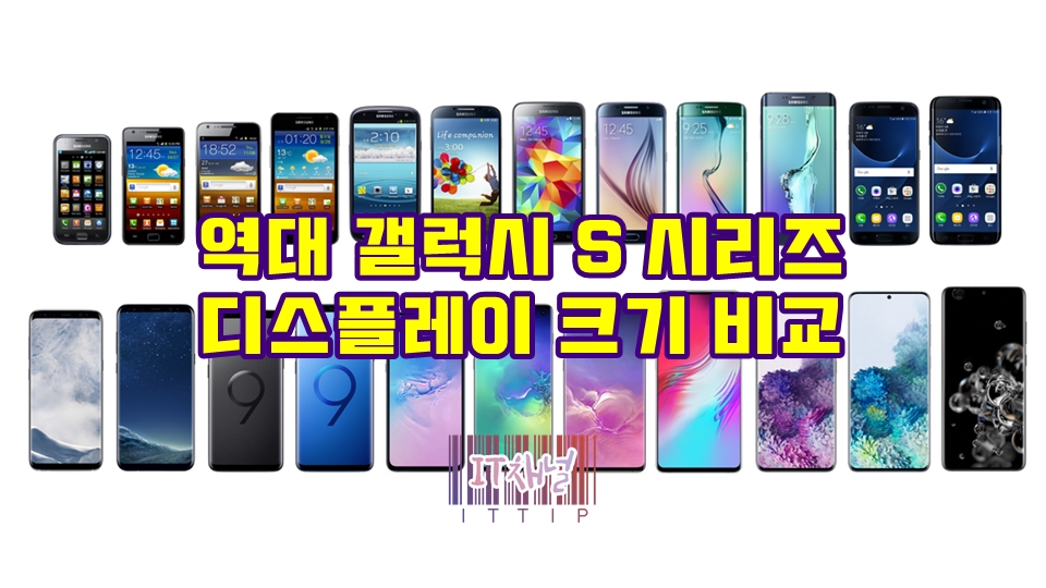 안녕하세요, 아이티채널입니다. 여러분들은 삼성하시면 떠오르는 스마트폰이 무엇인가요? 바로 갤럭시 S 시리즈겠죠. 갤럭시 S 시리즈는 지난 2010년을 시작으로 올해 2020년까지 총 11세대가 발표되었는데요, 세대가 거듭되면서 디스플레이 크기도 점점 커져왔죠. 그런데 얼마나 커졌을까요? 그래서 오늘은 한 번 여러분들과 함께 역대 갤럭시 S 시리즈의 디스플레이 크기를 비교해보는 시간을 가져보도록 하겠습니다. (e, +, 울트라 등은 제외하고 각 세대별 기본 단말기만을 모았습니다.) 함께 보시죠.